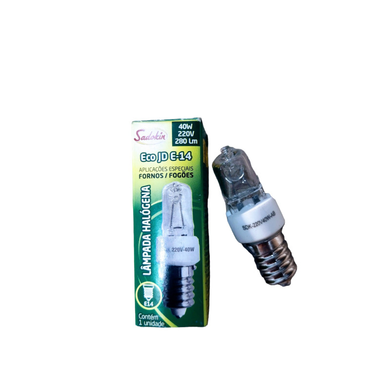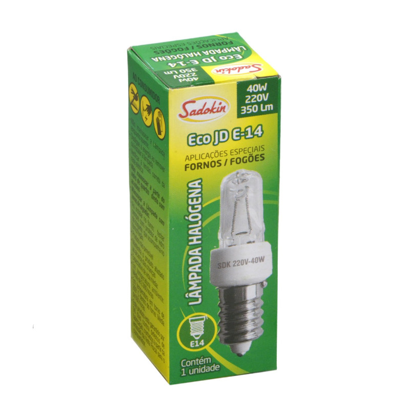 LAMPADA HALOGENA COM 40W DE POTENCIA PARA FORNO, FOGÃO, LUSTRES, MICRO-ONDAS, SINALIZADORES, COR DA LUZ AMARELO, SOQUETE E14 QUE É COMPATIVEL COM AS GRANDES MARCAS DISPONIVEIS, TAIS COMO: ELETROLUX, BRASTEMP, SUGGAR, ESMALTEC, VENAX, ATLAS, CONSUL. LAMPADA COM BULBO DE VIDRO TU22 COMPACTO, ILUMINA MUITO BEM SEU ESPAÇO, COM ALTA DURABILIDADE. LAMPADA DE ALTA TEMPERATURA, SUPORTA ATÉ 380ºC