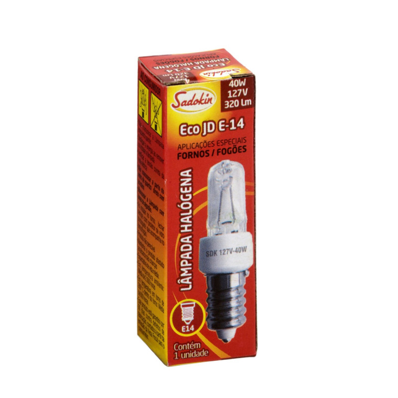 LAMPADA HALOGENA COM 40W DE POTENCIA PARA FORNO, FOGÃO, LUSTRES, MICRO-ONDAS, SINALIZADORES, COR DA LUZ AMARELO, SOQUETE E14 QUE É COMPATIVEL COM AS GRANDES MARCAS DISPONIVEIS, TAIS COMO: ELETROLUX, BRASTEMP, SUGGAR, ESMALTEC, VENAX, ATLAS, CONSUL. LAMPADA COM BULBO DE VIDRO TU22 COMPACTO, ILUMINA MUITO BEM SEU ESPAÇO, COM ALTA DURABILIDADE. LAMPADA DE ALTA TEMPERATURA, SUPORTA ATÉ 380ºC