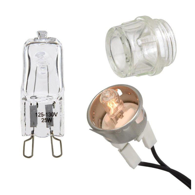 Soquetes para Fornos Elétricos e Fornos de Fogões com e sem Lâmpadas para segmento de eletrodomésticos, fabricantes de fogões e fornos elétricos entre outros. Dependendo da aplicação do cliente, atendemos sómente o soquete com protetor de vidro, conjunto soquete com Lâmpadas, sendo uma incandescente tubular TU-25 de 127V 15W ou 220V 15W, Halógenas JD-14 127V 25W e 220V 25W e também 127V 40W e 220V 40W com base E-14, e soquetes com sistema de encaixe para a Lâmpada Halógena G-9 127V 25w e 220V 25W de alta temperatura.